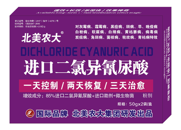 本品由北美農(nóng)大集團與中國農(nóng)科院采用進口二氯異氰尿酸和微生物菌和進口助劑復配而研發(fā)一種特效型產(chǎn)品,對真菌、細菌、病毒等各種病害殺菌快、傳導快、吸收快、雙重營養(yǎng)特效產(chǎn)品;對作物一秒鐘殺菌,3秒鐘補充營養(yǎng),10分鐘傳導在作物各個部位,其效果是同類普通產(chǎn)品的2-3倍,使作物重復殺菌,快速吸收營養(yǎng),殺菌率達到98%以上。